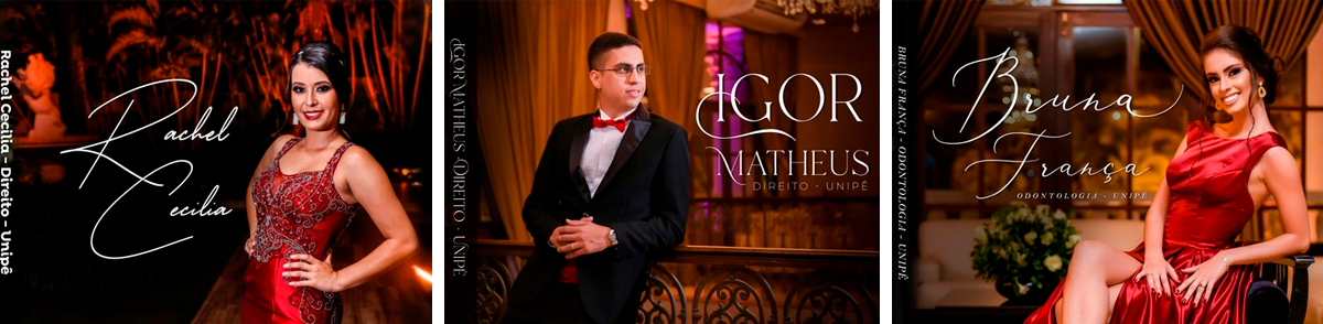 Movidos por um desejo criativo, em cada segmento que atuamos, trazemos arte, inspiração e sentimentos aos nossos registros. No segmento de formaturas, cansado da mesmice do padrão das fotos, utilizamos elementos que não eram utilizados e iluminação mais bem trabalhada.